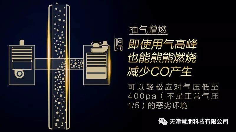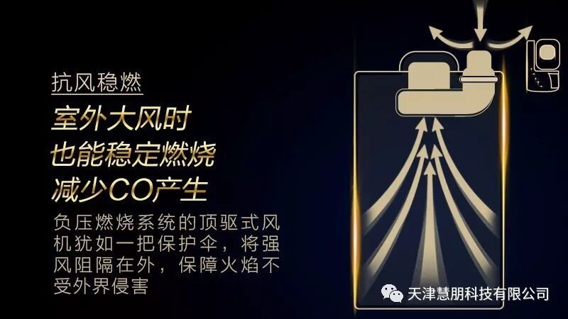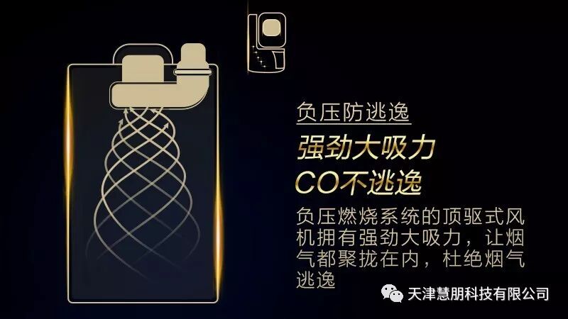 A.O.史密斯的研发工程师们很巧妙地将燃气热水器传统的下置鼓风机改为顶驱式风机,这样就能够在燃烧舱内创造负压环境:用气高峰期“抽气增燃”,大风天时“抗风稳燃”,有效解决由于燃烧工况不佳而产生过量一氧化碳的问题。而且其燃烧产生的有毒烟气一氧化碳也会被负压燃烧系统的顶驱式风机聚拢在内,消除泄露隐患。