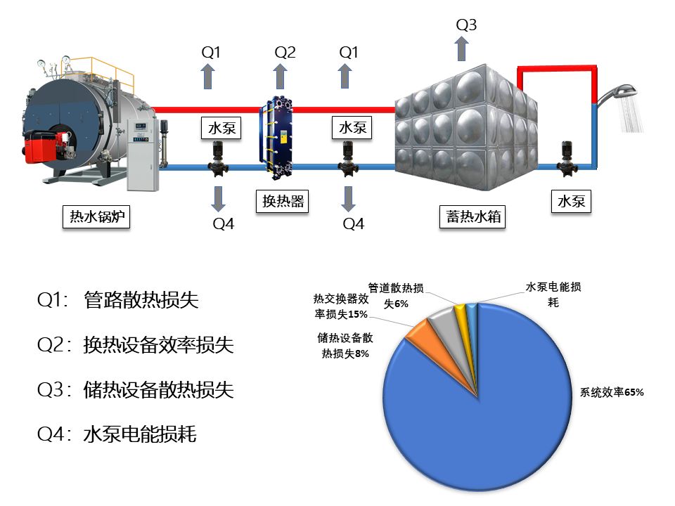 热水锅炉一般也是采用间接换热的形式来供应生活热水,这种系统形式在传统热水锅炉中应用很普遍。但也带来了一些弊端,比如系统仍然较为复杂,辅机多,造价高等问题仍然需要解决。